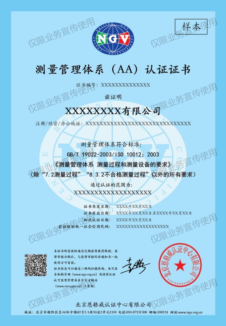 3.企业在测量管理能力的有效证明,获取国内、外市场对企业测量管理能力的认可。