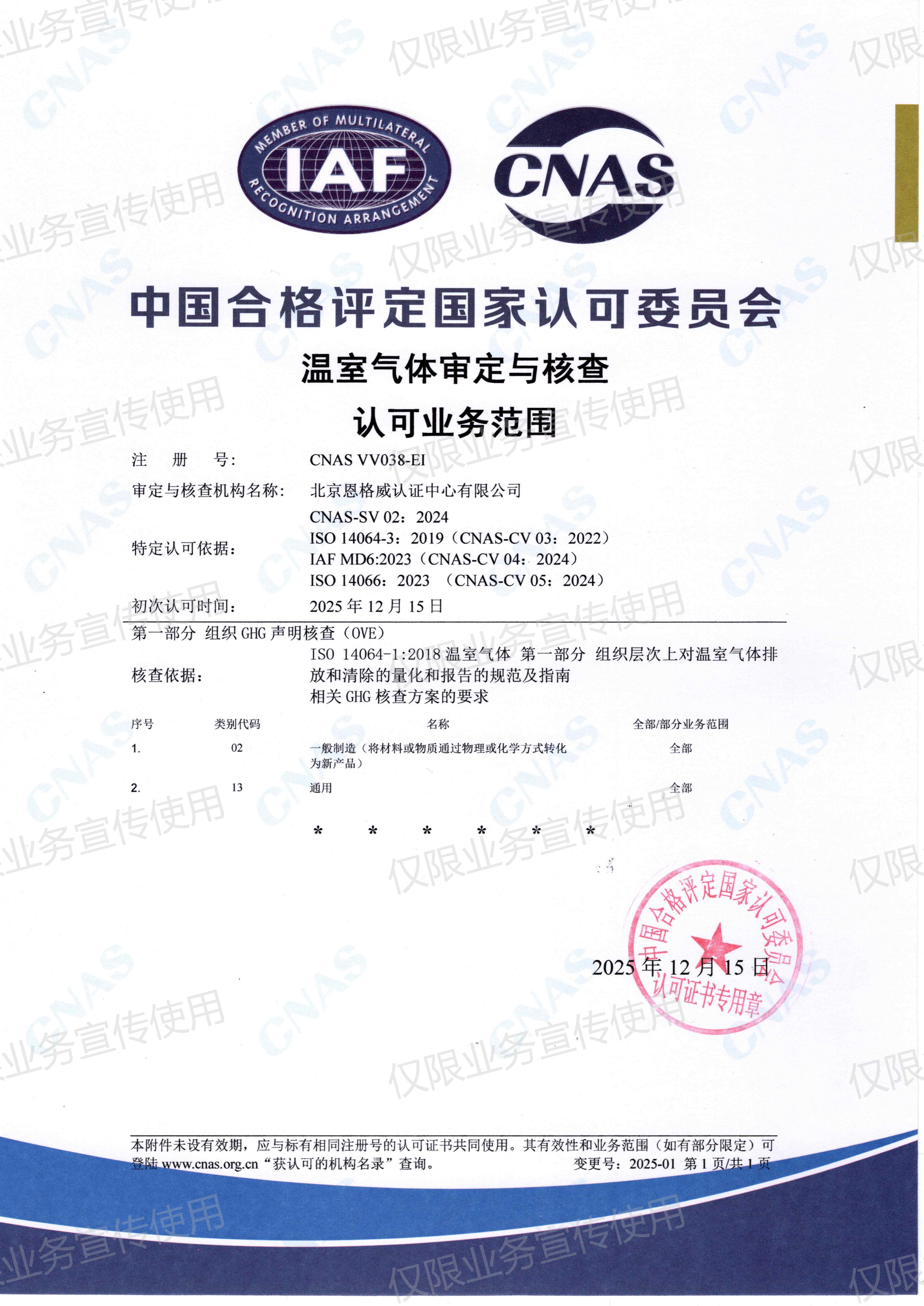 温室气体审定与核查认可业务范围
