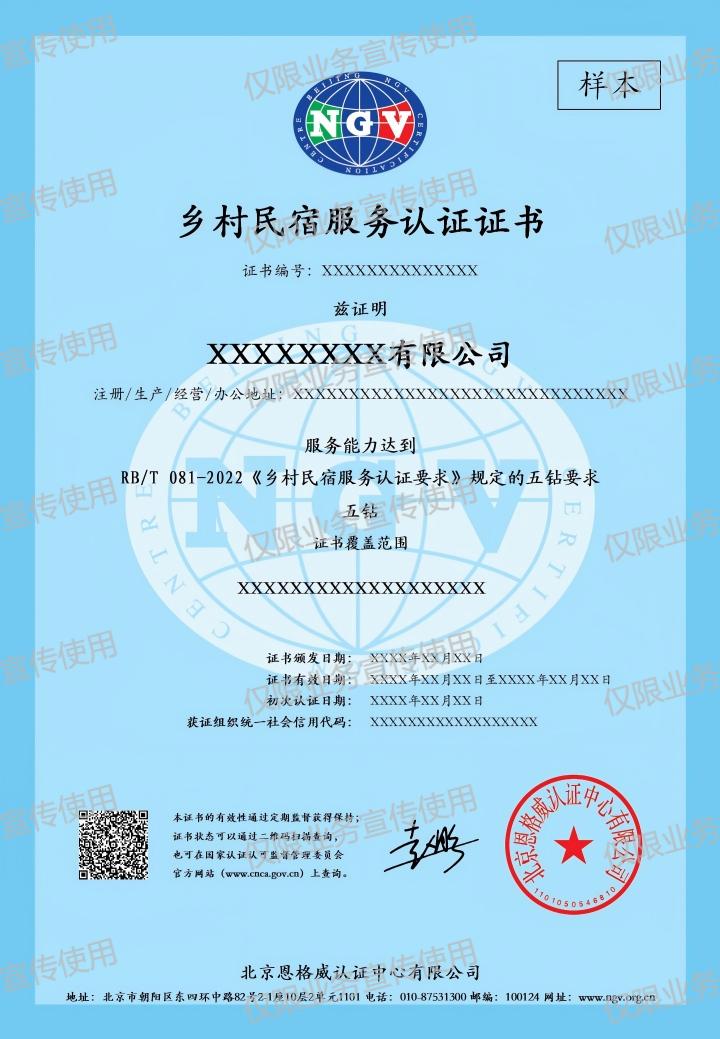 所属认证领域:SC04 住宿服务;食品和饮料服务