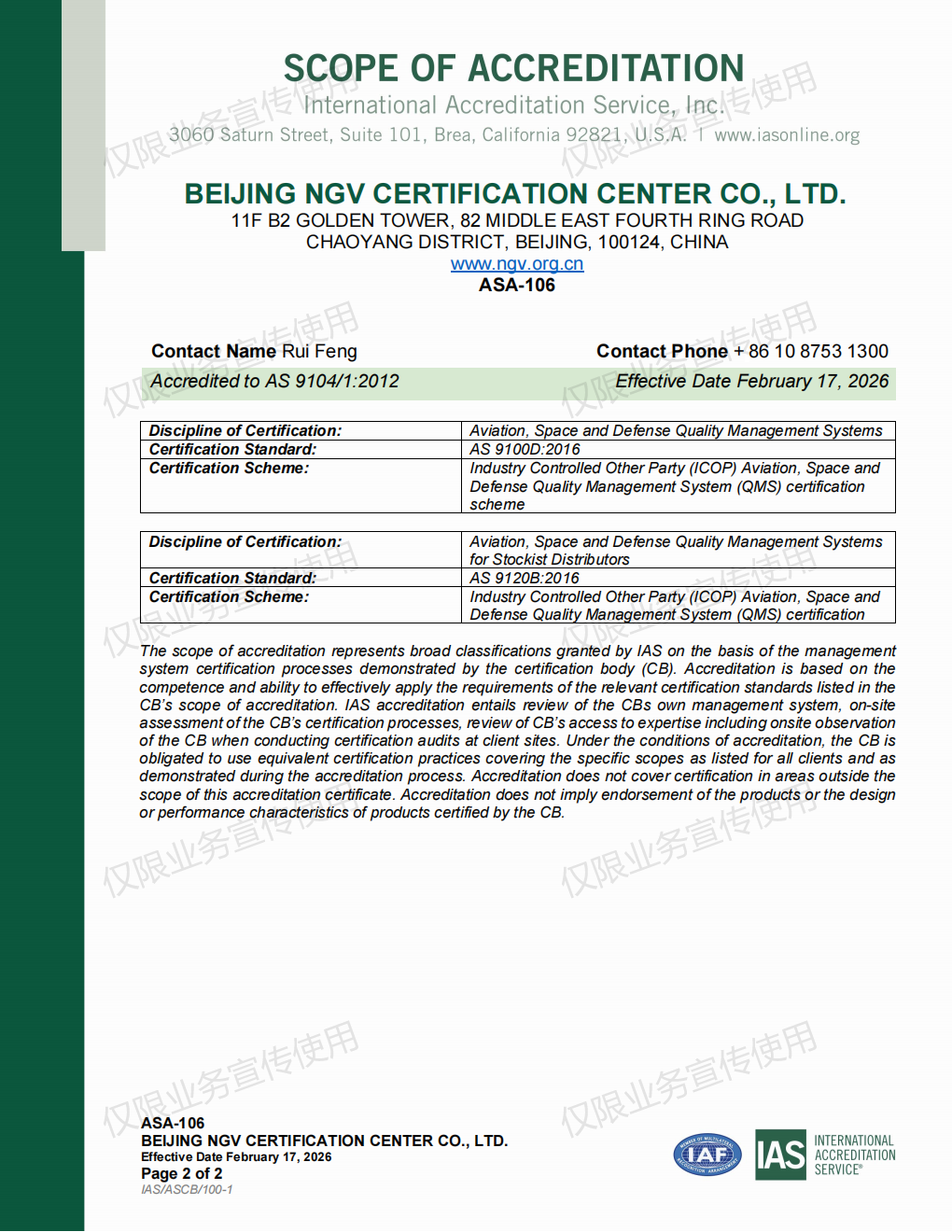IAS 认可证书——附件