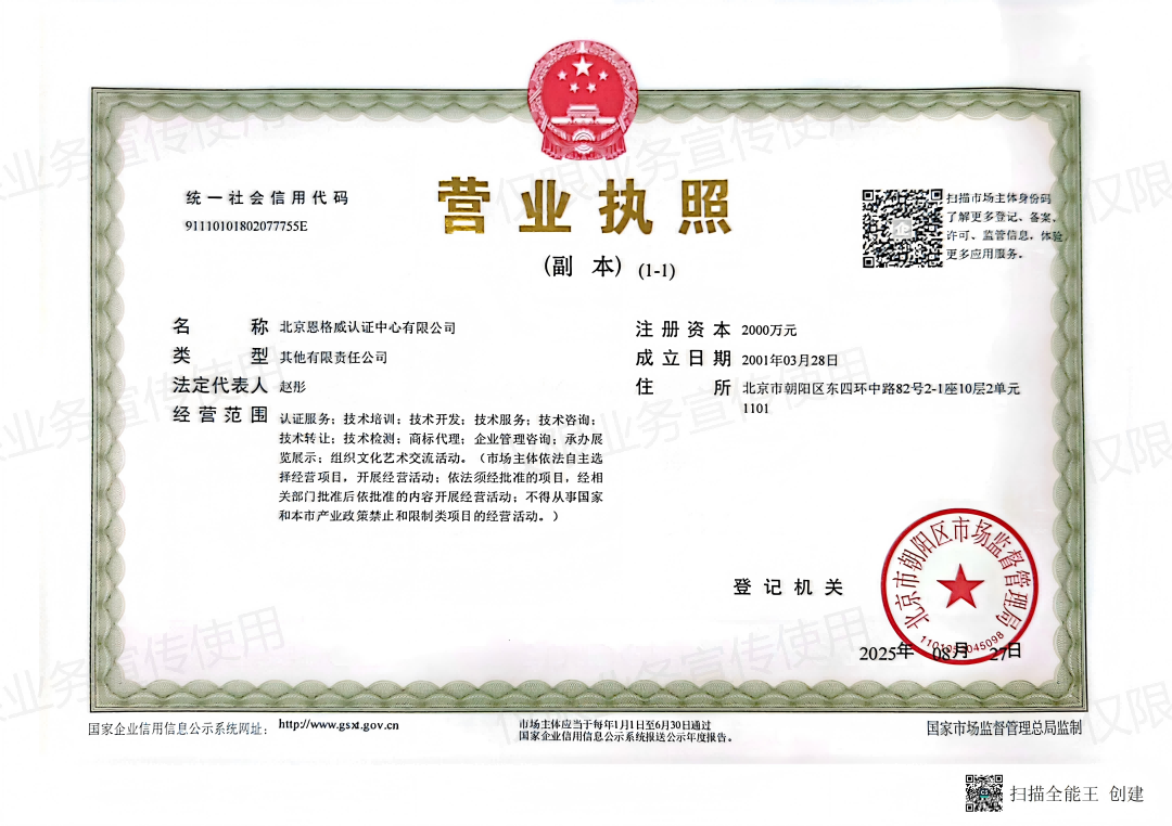 F体系认证机构认可业务范围